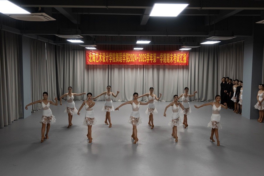 近日,舞蹈学院舞蹈表演专业国标舞方向的学生们迎来了大学首次的期末考试。此次考试不仅是对学生们入学以来学习成果的检验,更是一场艺术交流与展示的盛会。广西艺术学院国标舞专业党支部书记张岩,以及柳州职业技术学院体育舞蹈教师杨友洪一行受邀莅临北海艺术设计学院,参访交流并共同见证了学生们的精彩表现和艺术成长。