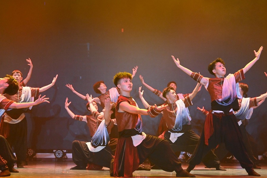 北海艺术设计学院舞蹈学院于2025年6月3日至6月4日,在学校西校区大礼堂举办舞蹈学院教学成果展暨2022级舞蹈表演专业课程结业汇报。学校党委书记覃宪儒、党委副书记陈毅华、副校长陶立阳、副校长包建明、总督学王斌、学工部部长班媚、学工部副部长刘玲花等领导嘉宾出席晚会,副校长陶立阳并为晚会致辞。