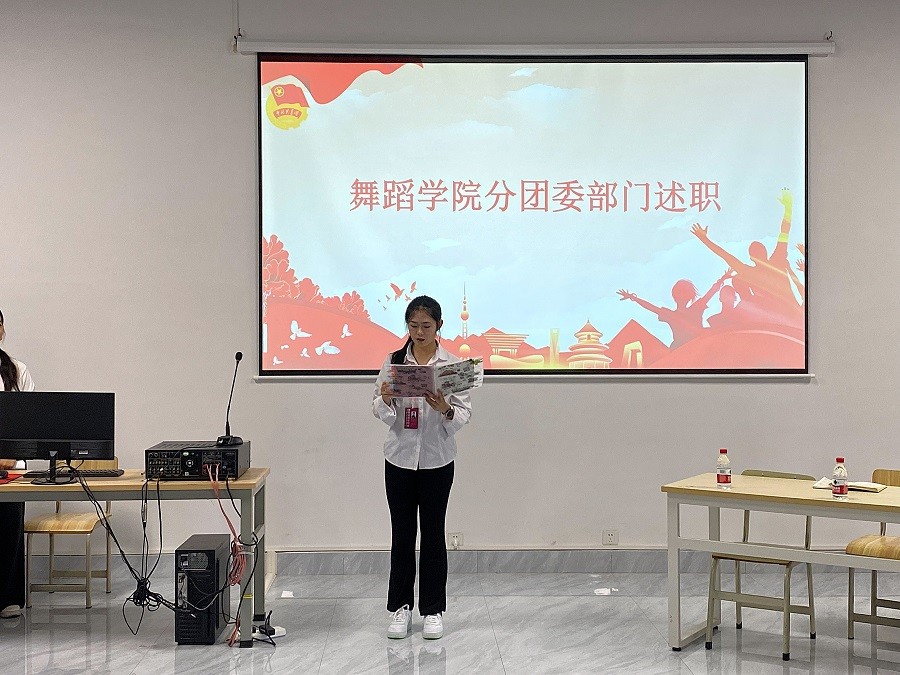 在部门述职环节,由分团委组织部、办公室、纪检部、学生会组织部、新宣部负责人发言。各部门立足自身岗位职责,分别从组织协调、思想引领、纪律监督、宣传推广等多个维度,分享了工作开展情况与阶段性成效,同时结合实际工作提出改进方向与未来规划,全面勾勒出舞蹈学院团学工作协同推进的清晰脉络。
