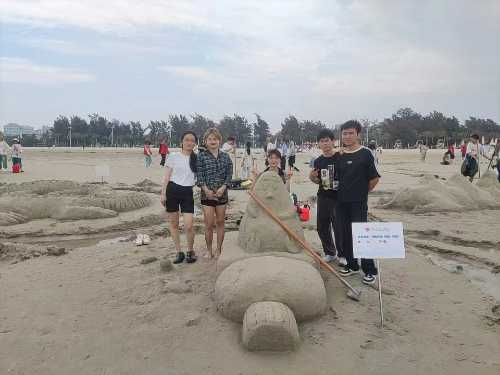 建筑与环境艺术学院学子在沙滩上尽展饱满热情与青春风采。在沙雕、沙滩排球、袋鼠跳、同舟共济、巨人脚步、水到渠成比赛项目中挥洒青春汗水,建环学院喜获第二十一届沙滩运动会团体总分第二名。(建环学院学工办/摄)