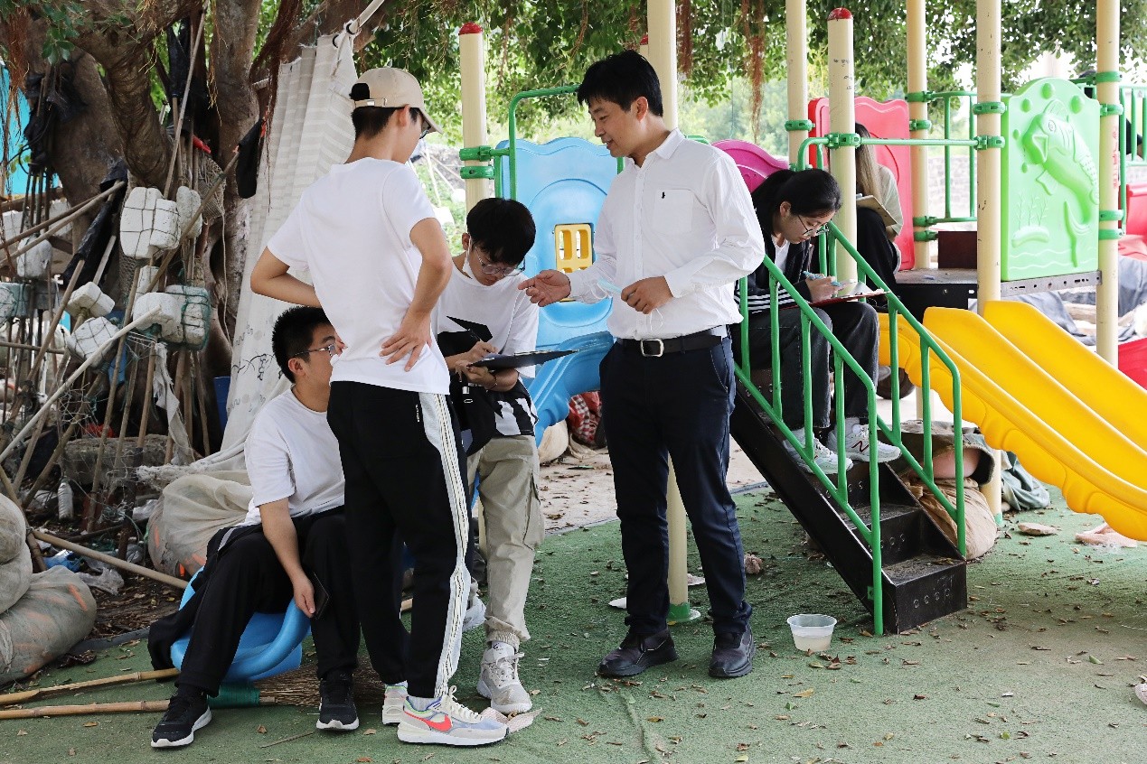 此次“涠洲岛”实践教学活动,全体师生还专门奔赴涠洲岛红色广场开展“红色涠洲”实践教学课程。涠洲岛红色广场是以纪念碑为主体的红色教育基地,包括红色剧场、红色之路、国防教育馆等场所。课程开展期间,同学们认真聆听思政老师讲诉涠洲人民在抗战时期以各种方式英勇抗争的英雄事迹。课后,同学们瞻仰革命烈士纪念碑,重走红色之路。此次红色教育课堂让同学们深入了解了涠洲红色历史,赓续红色血脉,增强家国情怀。