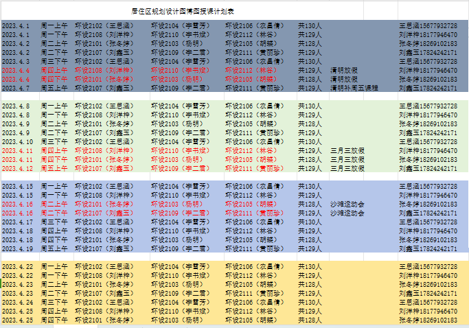 (北海艺术设计学院环境设计专业实践教学活动计划表)