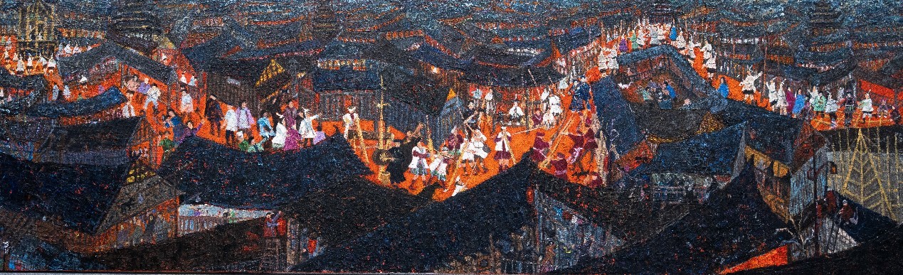 刘栋 《侗族清韵》 70cm×230cm 布面油画