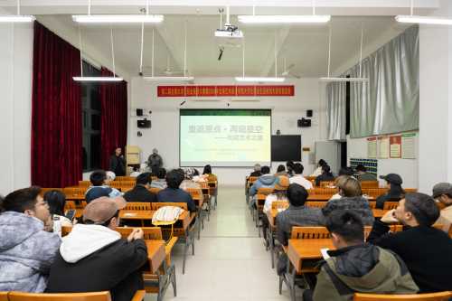 12月24日晚,美术学院在伦理楼101教室成功举办了“教师队伍专业能力提升计划”系列课程的第二讲。本次课程以“重返原点·再窥星空——刘斌艺术之路”为主题,由美术学院院长、原中央美术学院壁画系教授刘斌主讲。学院办公室主任李康楠主持本次讲座,出席人员有美术学院执行院长龚为教授、副院长金凯婧、雕塑专业学科带头人王少军教授以及雕塑、绘画、美术学专业的专任教师。