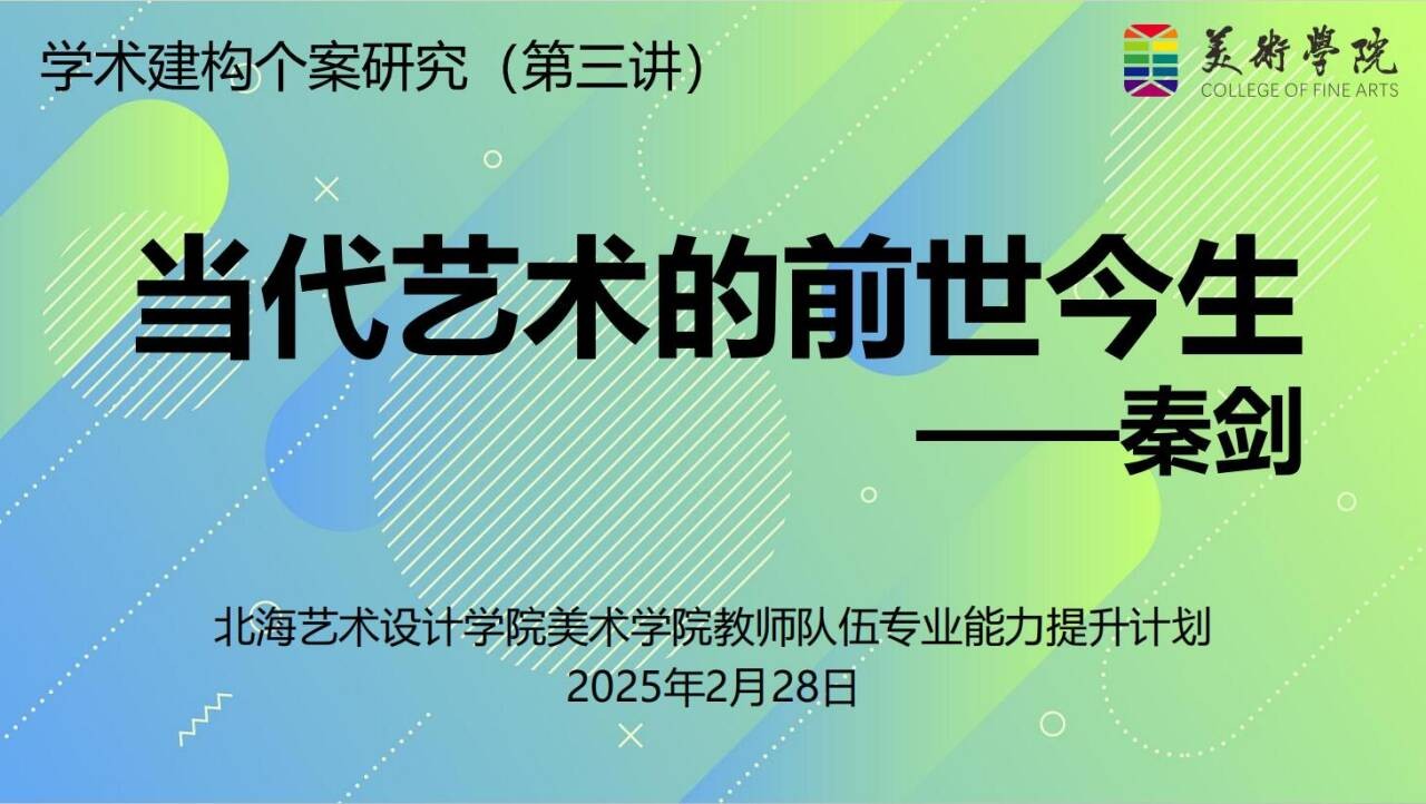 2月28日,美术学院在艺术楼314教室成功举办了“教师队伍专业能力提升计划”系列活动的第三讲。本次讲座以“当代艺术的前世今生”为主题,由美术学院外聘教授,原广西师范大学美术学院油画教研室主任、著名当代艺术家秦剑教授主讲。学院办公室副主任景思晔主持本次讲座,出席人员包括美术学院院长刘斌教授、执行院长龚为教授、副院长金凯婧、副院长陈建江、雕塑专业学科带头人王少军教授以及雕塑、绘画、美术学专业的专任教师。