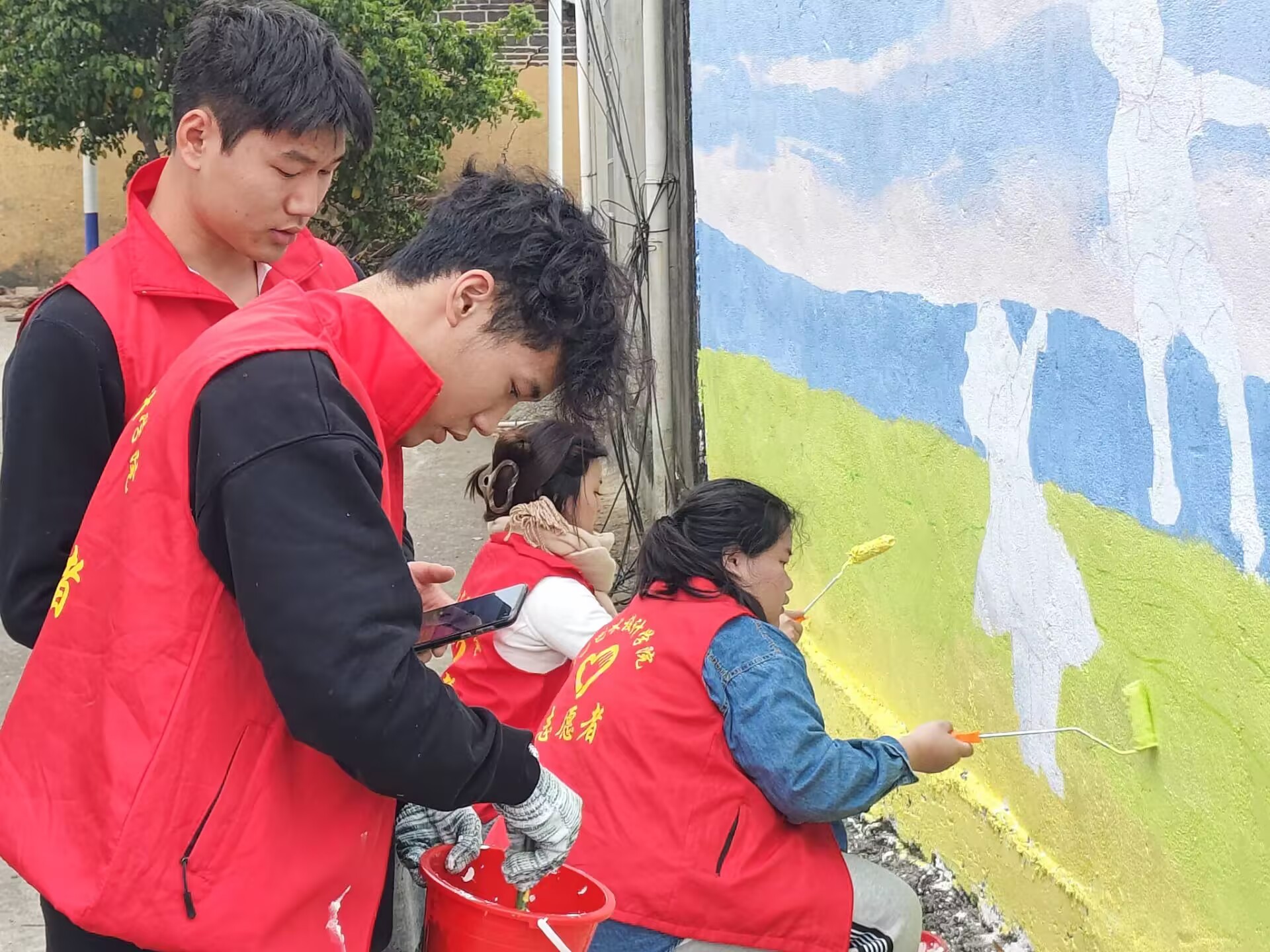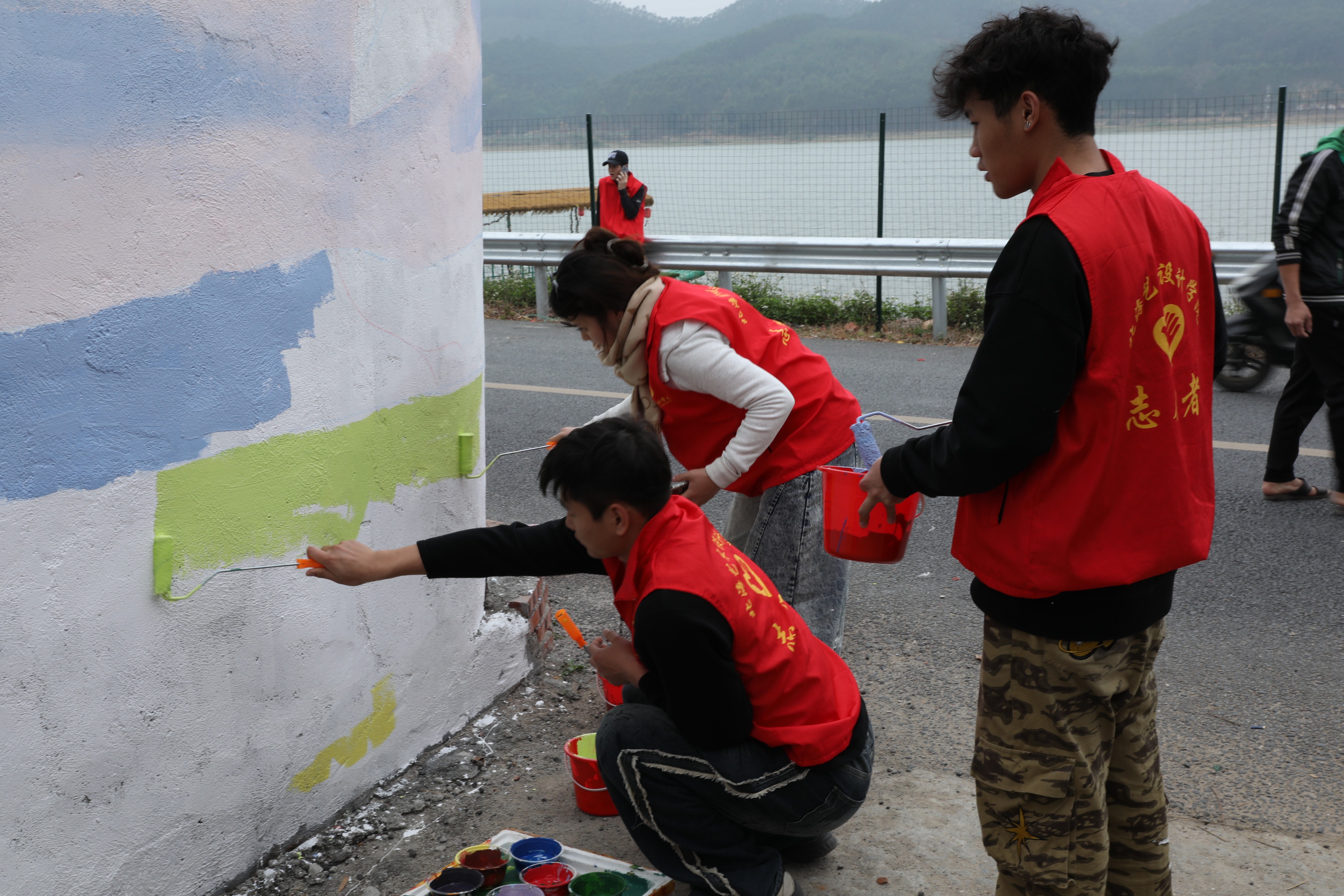 井山村小洱海墙绘学生绘制过程