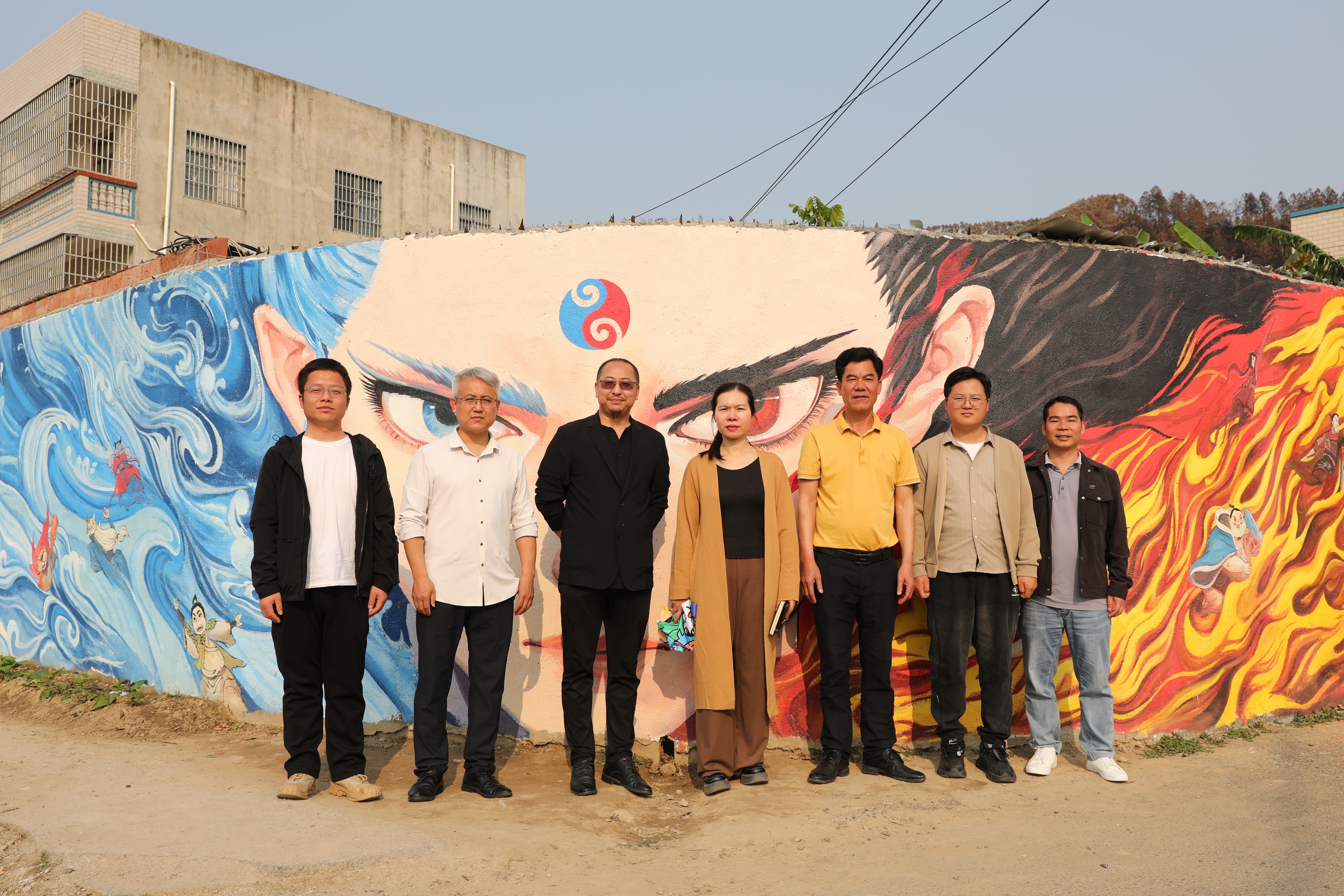 井山村小洱海墙绘师生合影