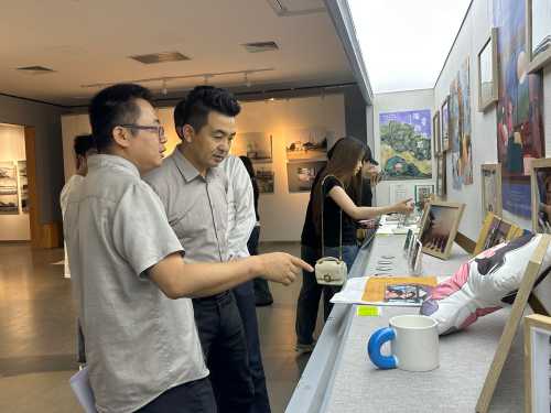 随后,学生代表分享了创作历程,表达了对母校培育的感恩之情。开幕式现场,学校领导为本次展览获得优秀奖的学生颁发获奖证书。