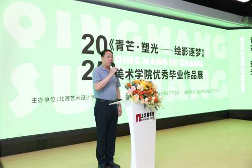 开幕式上,学校和学院领导、业界专家、师生代表齐聚一堂。北海艺术设计学院副校长陶立阳在致辞中表示:“这个展览是同学们四年学习成果的集中展示。每一幅作品都是大家历经淬炼的心血结晶,是艺术探索之路的见证。”陶立阳副校长对出席本次开幕式的嘉宾表示由衷的感谢,对指导老师们和展览策划工作人员们的辛勤付出给与肯定,对美术学院的毕业生们给与祝福!