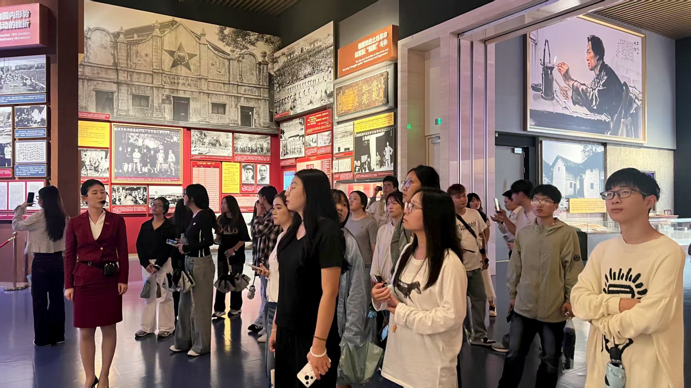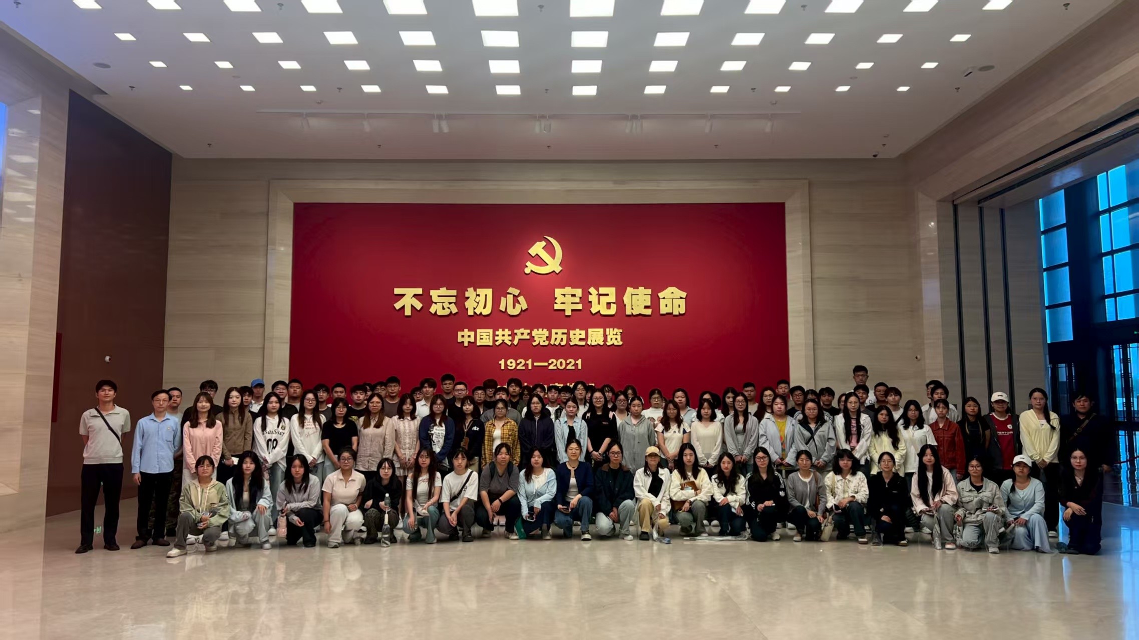 8月27日上午,走进中国共产党历史展览馆,“不忘初心、牢记使命”的主题映入眼帘。一件件珍贵的文物、一幅幅生动的图片、一段段感人的故事,让学生们深刻感受到中国共产党百年奋斗的艰辛与辉煌。参观结束后,很多学生表示,此次红色研学让自己的理想信念更加坚定。书法艺术不能脱离时代,党的百年奋斗史是最生动的教材,未来我们要将红色精神融入书法创作,用笔墨书写新时代的故事。