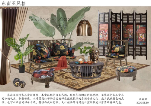 环艺1704苏霜霜 东南亚风格客厅陈设