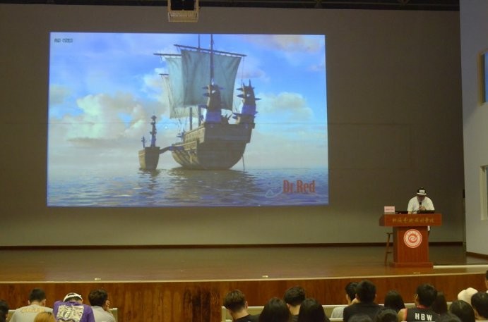 接着,由黄光宗总监给我们展示Dr.Red公司的优秀作品《小姜丝》、《油鬼》,并介绍公司的合作伙伴、领导阶层等,让同学们更加深入了解Dr.Red公司。随后,黄光宗总监向大家讲述自己在校求学时,从一个“门外汉”到动画导演的转变,使大家产生浓厚的听讲兴趣。他表示同学们既然选择了动画专业,就要风雨无阻的学习下去,有一份耕耘才会有一份收获。