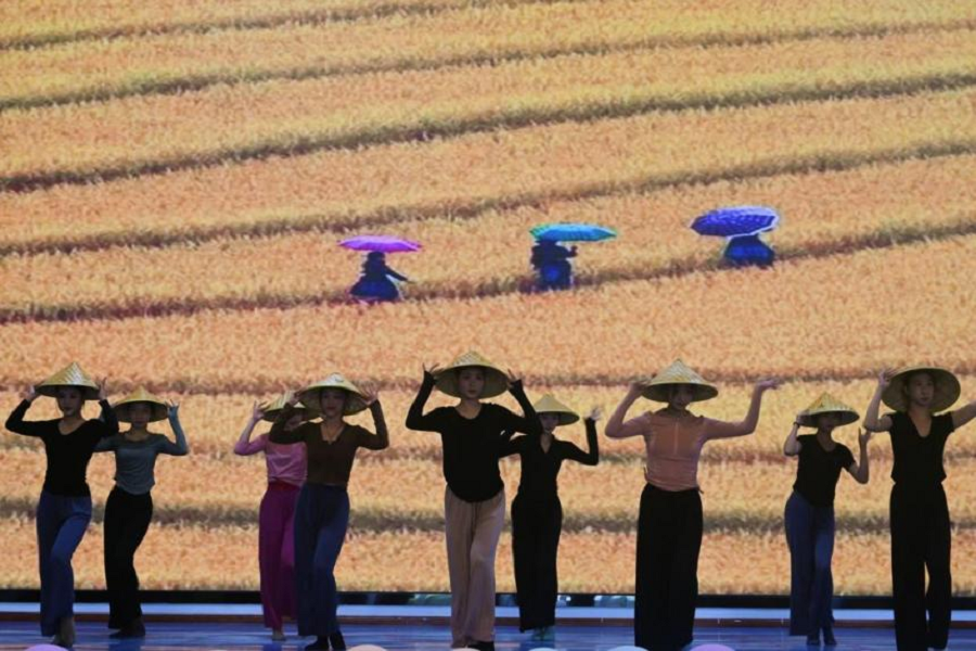 响》则演绎了海南保亭黎族的非遗文化“跳娘舞”,通过碗的敲击,探寻与天地对话。击碗声激荡心扉,柔美的灯影、稻草的芬芳化作婀娜多姿的舞步。