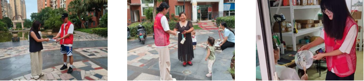 活动现场,团支部志愿者们精心布置了文创展示区,风格各异的书法文创扇子有序陈列:既有行云流水的诗词书法扇,也有融合水墨与书法元素的创意团扇,还有专为儿童设计的趣味卡通书法扇,吸引众多居民驻足观赏。团支部志愿者们们化身“文创讲解员”,从书法字体演变、扇面构图美学等几个方面向居民讲解了扇子的设计灵感与文化寓意。