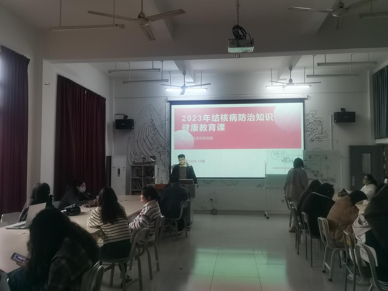 开设了结核病防治知识健康教育课,课程主要强调结核病的概念、危害、传染源与传播途径以及如何防范传播等系列内容,为学生普及对结核病危害的认识。组织学生集体观看由自治区教育厅、自治区卫生健康委员会联合主办的《2023年世界防治结核病日广西校园宣传教育科普大讲堂》直播视频,同时为学生们发放《学校结核病健康教育宣传核心知识》,向学生普及结核病综合防治知识,教育学生养成健康的生活方式,提高自我防范能力。(周晓敏/摄)