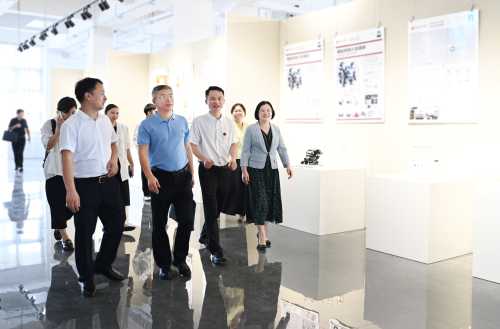 中国工艺美术大师利成世(右二)、北京工业大学贾荣建教(右一)授参观展览。