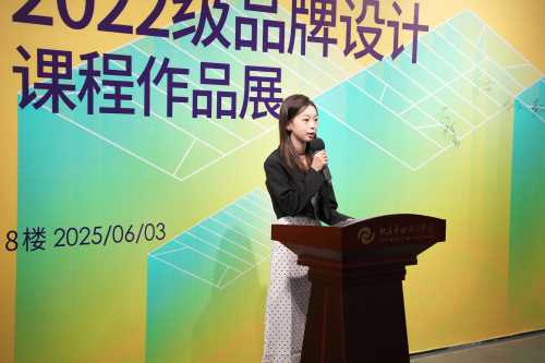 学生代表代荔盈分享了学习心得与感悟。她表示,每一件品牌设计作品都承载着对艺术最纯粹的执着与热爱。在设计过程中,她始终以匠人精神反复推敲,从品牌内核到视觉呈现不断突破创新,力求每个线条、每处色彩都能传递设计之美。代荔盈同学的分享,不仅展现了她对设计艺术的热爱,更传递出新时代设计学子追求极致、敢于突破的专业态度。