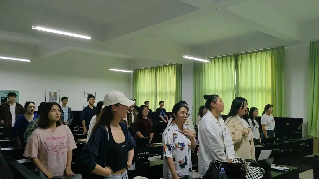 我校合唱团的同学们在团委老师的带领下以动人的旋律传递出奋进的力量和对党对祖国的浓浓情谊,令现场观众仿佛置身“红色浪潮”;或情意浓浓共谱民族团结曲,以基层百姓喜欢的民族题材铸牢中华民族共同体意识,满足现场观众对多民族音乐艺术观赏的需求。