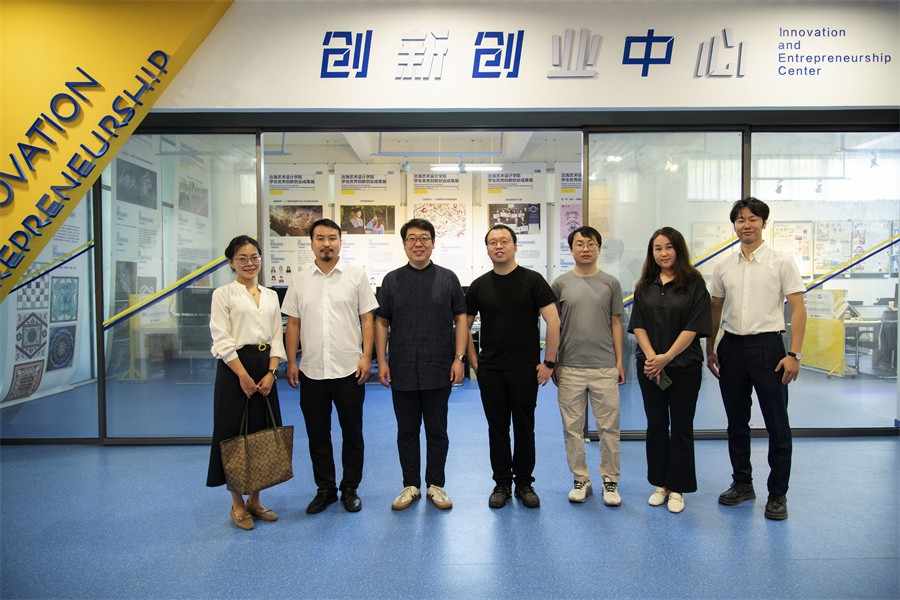 随后,在设计艺术学院院长李林平、创新创业学院院长云曼、实验室主任岳沛龙等领导老师的陪同下,UI中国、即时设计一行参观走访了我校创新创业学院,云曼院长结合展品展示了学院工作室、实验室建设,校企合作及实践教学成果等方面内容。
