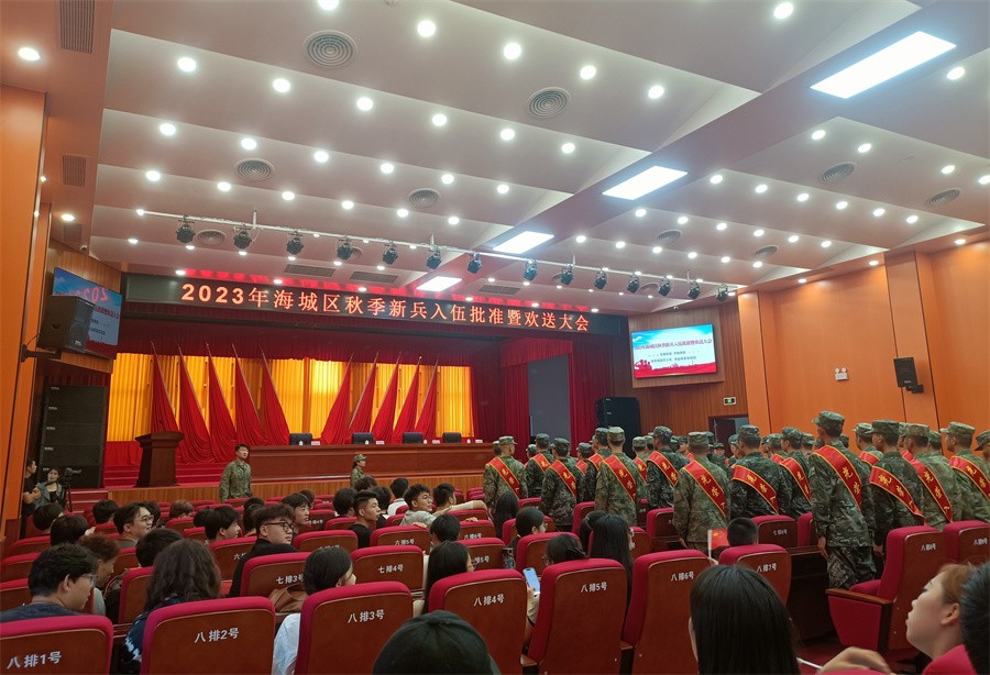 9月15日上午8时许,我校40余名师生参加海城区举办的2023年秋季新兵入伍批准暨欢送大会。来自我校环艺1905班的刘洪宇作为本次新兵代表发言,他表示将在今后的军营生活中勤奋学习,听从指挥,练就过硬本领,努力把自己培养成政治合格、军事过硬、纪律严明、作风优良的新一代合格军人。