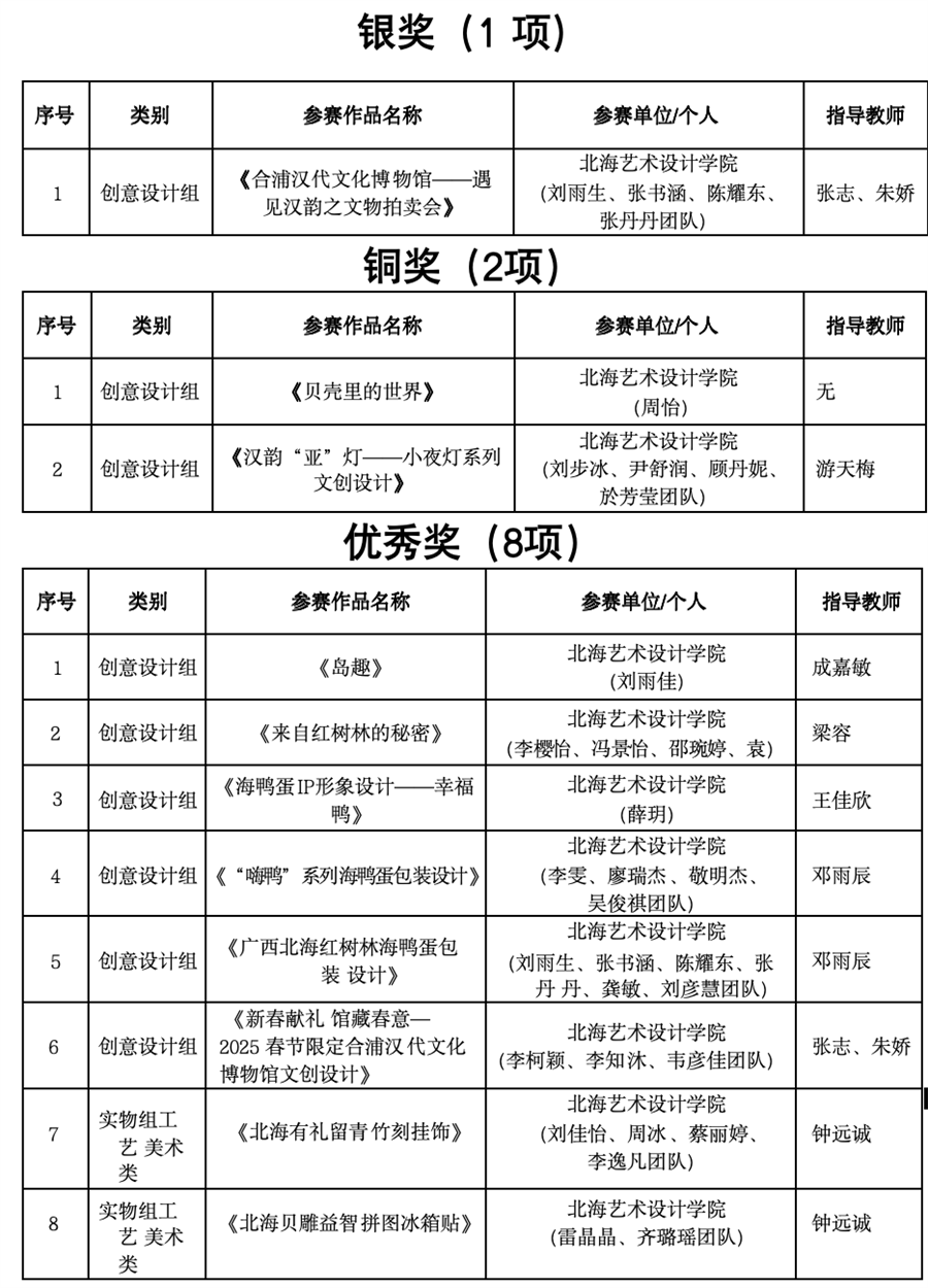 喜报丨设计艺术学院在2024年“北海有礼”特色旅游商品大赛中喜获佳绩