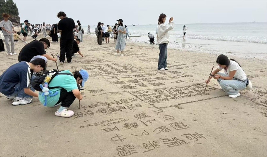 书法学院举办首届“沙韵书香・笔耕蓝海”沙滩书法大赛