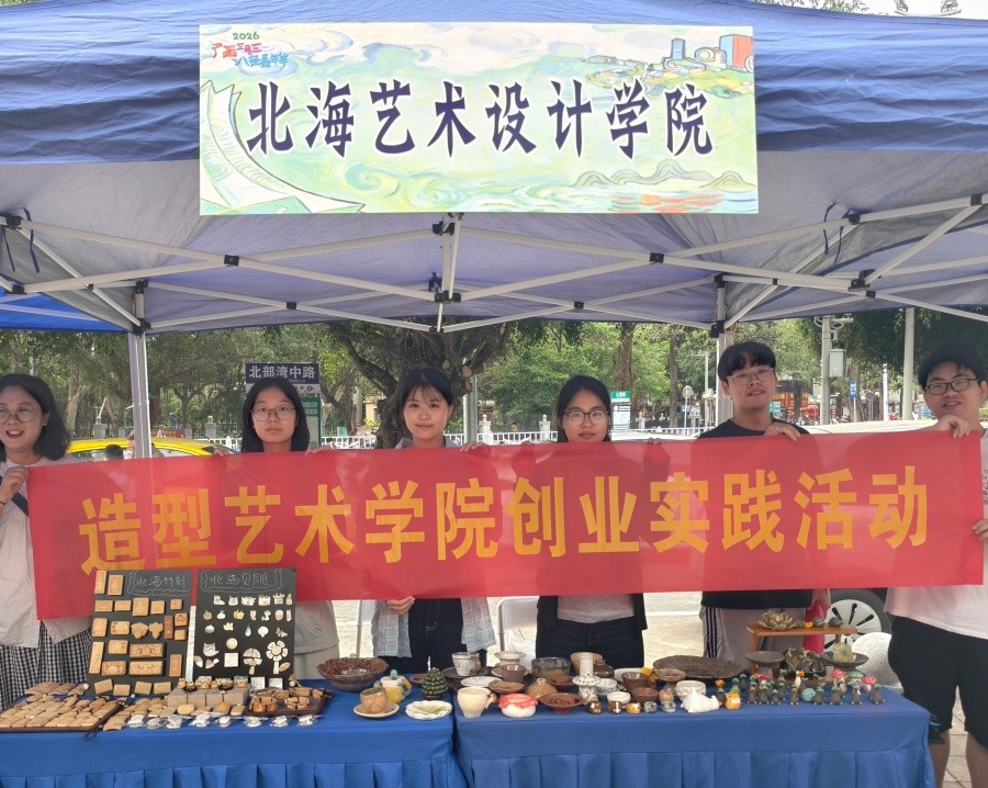 4月17日,“党建引领·匠心筑梦 非遗有约”2026年三月三北海非遗特色集市在北海市工人文化宫南广场顺利举办。我校造型艺术学院组织师生携非遗文创产品参展,将课堂教学成果与非遗文化、地域特色相融合,面向社会集中展示产品设计专业的创新实践能力。