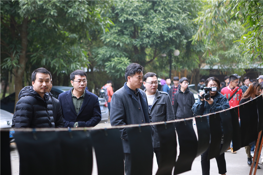 李林平常务副院长、杜博书记、陶立阳常务副院长在观看作品
