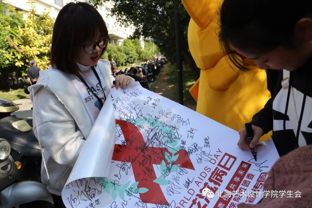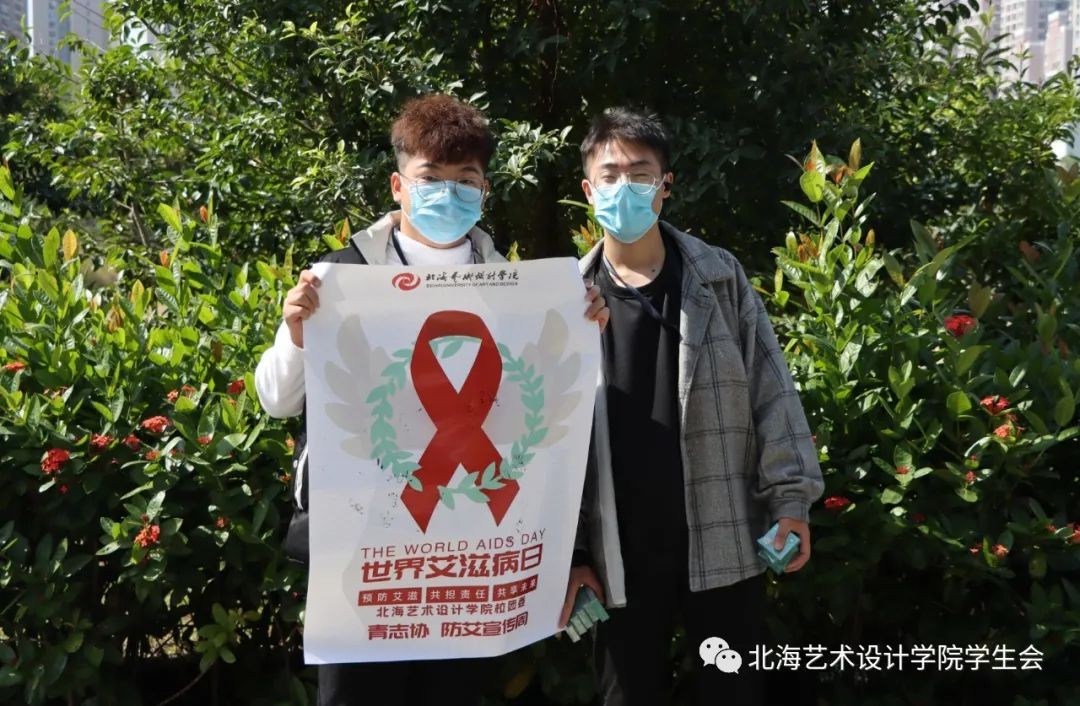 2020年12月1日,由北海艺术设计学院主办、校团委青年志愿者协会承办的世界艾滋病日防艾宣传主题活动正式拉开序幕。相关的摆摊宣传活动于东校区图书馆、东校区学生公寓二栋楼下、西校区食堂门口、西校区大礼堂门口、11栋女生宿舍楼下进行。艾滋病知识讲座于当日19:30在西校区大礼堂进行。