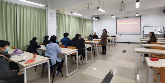 2023年3月3日在北科实践教学基地教室召开辅修专业毕业工作推进会,主持人严腾介绍学生在京学习情况,副校长王斌、人文教育学院院长熊秀峰和哲学教研室主任覃传茵对辅修哲学专业的学生进行毕业论文相关注意事项和毕业论文重要性进行了深入讲解。