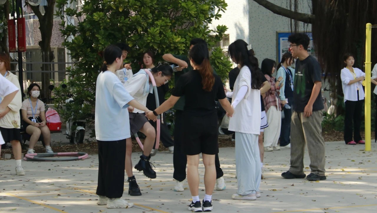 这个游戏充满了趣味与挑战。只见同学们使出了浑身解数,有的人扭动得如同电动马达般迅速,有的人则表现得略显生疏,他们的每一个动作都充满了活力和个性。这个环节不仅让同学们在轻松愉快的氛围中感受到了运动的乐趣,更增进了彼此之间的友谊。