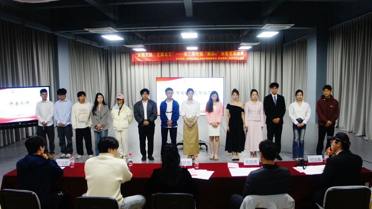 2025年12月26日,由共青团北海艺术设计学院委员会主办,舞蹈学院分团委承办的“舞溯文脉,艺聚北艺”第二届校园“舞蹈+”创意活动决赛在艺德楼313小剧场顺利完赛,舞蹈学院常务副院长邓欢、副院长李谦、书法学院副院长李家琪、北京实践基地副主任严腾等领导老师以及各专业学生来到现场观赛。舞蹈学院副院长翁梦蕾、建筑与环境艺术学院高级工程师,北海艺术设计协会会员农昌倩、舞蹈学院艺术教育教研室主任苏泽浩、美术学院摄影教研室专业教师何汝鑫、影视动画学院专业教师王弘武担任本次决赛的评委。