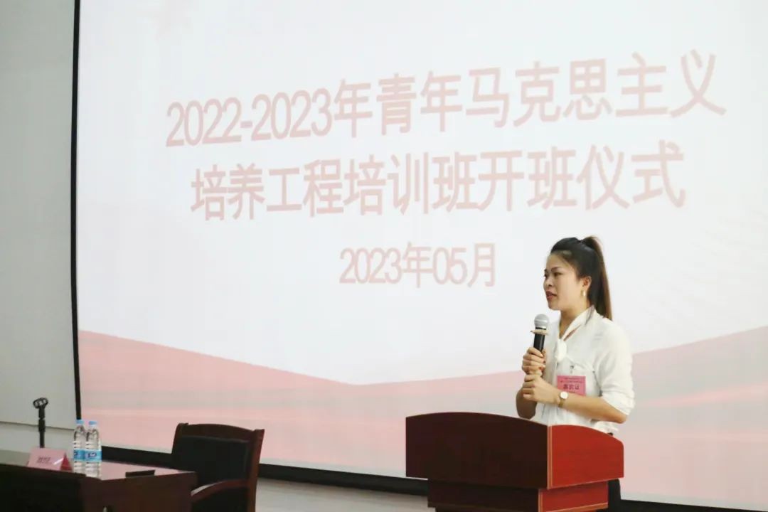 为深入学习宣传贯彻党的二十大精神和习近平总书记关于青年工作的重要论述,用马克思主义的立场观点方法武装头脑、指导实践、推动工作。加强党性修养,筑牢信仰之基、补足精神之钙、把稳思想之舵。培养新时代政治素质坚定、理想信念崇高、实践能力过硬的大学生骨干。5月28日,北海艺术设计学院青马工程培训班开班仪式在伦理楼107举行,参加本次开班仪式的领导有我校马克思主义学院副教授刘兴仁、团委副书记宋慧敏,我校148名青马工程培训班学员参会。
